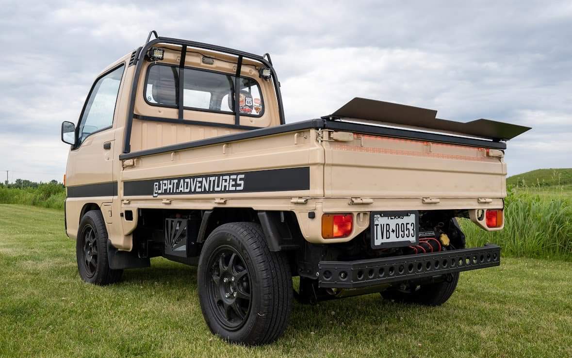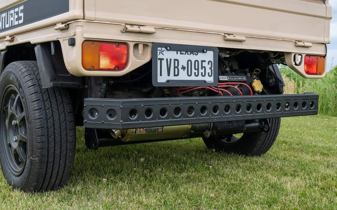 Classic AFab bomber style rear bumper for the Sambar. Replaces the rear cover with a medium duty rear bumper. Center is dimple died and has tack welds to mimic aircraft rivets. Mounts are 3 way adjustable. Includes all hardware. Fits with the AFab exhaust.